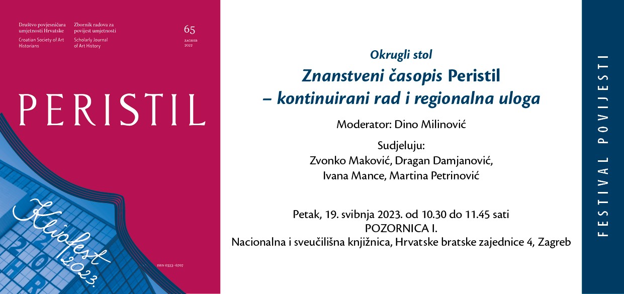 Društvo povjesničara umjetnosti Hrvatske strukovno je udruženje koje već gotovo 70 godina djeluje na području humanističkih znanosti. Od svog osnutka izdaje znanstveni časopis Peristil u kojem se objavljuju istraživanja iz područja povijesti umjetnosti i srodnih društveno humanističkih znanosti. Svaki broj Peristila besplatno je dostupan u otvorenom pristupu na Portalu hrvatskih znanstvenih časopisa Hrčak te ima najviše preuzimanja u svojem polju humanistike. Peristil od 1954. godine kontinuirano komunicira sa znanstvenom zajednicom u Hrvatskoj i povezuje istraživače u zemljama iz našeg okruženja.