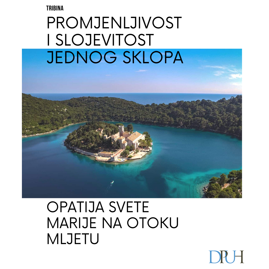 Utvrđeni benediktinski samostanski sklop, sa srednjovjekovnom crkvom sv. Marije i novovjekovnim samostanskim zgradama, nalazi se na otočiću sred Velikog jezera na sjeverozapadnom dijelu otoka Mljeta u prirodno zaštićenom prostoru Nacionalnog parka Mljet. Ta dobro očuvana višestoljetna graditeljska cjelina od izrazite je umjetničke, povijesne i ambijentalne vrijednosti, pa se s pravom ubraja u red znamenitijih spomenika graditeljskog naslijeđa na istočnoj obali Jadrana. Od iznimne vrijednosti je crkva sv. Marije, kao istaknuti spomenik romaničkog sakralnog graditeljstva na istočnom Jadranu, a posebice je važna za Dubrovnik i njegovu okolicu budući da je mljetska Sv. Marija jedina sačuvana reprezentativna romanička građevina na tom prostoru. Premda je značaj mljetskog samostana, a poglavito romaničke crkve, zarana prepoznat od strane domaćih i stranih stručnjaka, ovo je prva znanstvena monografija posvećena toj izrazito vrijednoj spomeničkoj cjelini naše starije baštine. O višestoljetnoj prošlosti mljetske opatije, kao i o romaničkoj crkvi sv. Marije te prostornim i graditeljskim transformacijama samostanskog sklopa tijekom srednjeg i ranog novog vijeka, ali i o sudbini mljetskog samostana nakon njegova ukinuća govorit će autorica monografije Opatija sv. Marije na otoku Mljetu / St Mary's Abbey on Mljet Island (Filozofski fakultet Sveučilišta u Zagrebu, FF-press; Dubrovačka biskupija, 2021.) Ivana Tomas, recenzenti Predrag Marković (Odsjek za povijest umjetnosti, Filozofski fakultet Sveučilišta u Zagrebu) i Joško Belamarić (Institut za povijest umjetnosti ‒ Centar Cvito Fisković, Split).