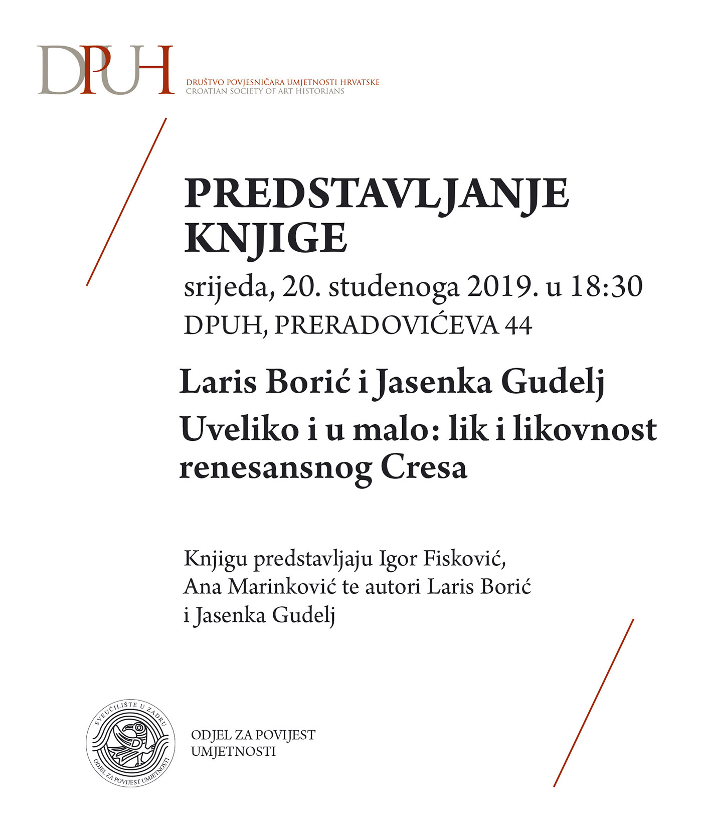 ČETVRTAK, 12. PROSINCA 2019. U 18:30 DPUH, PRERADOVIĆEVA 44
