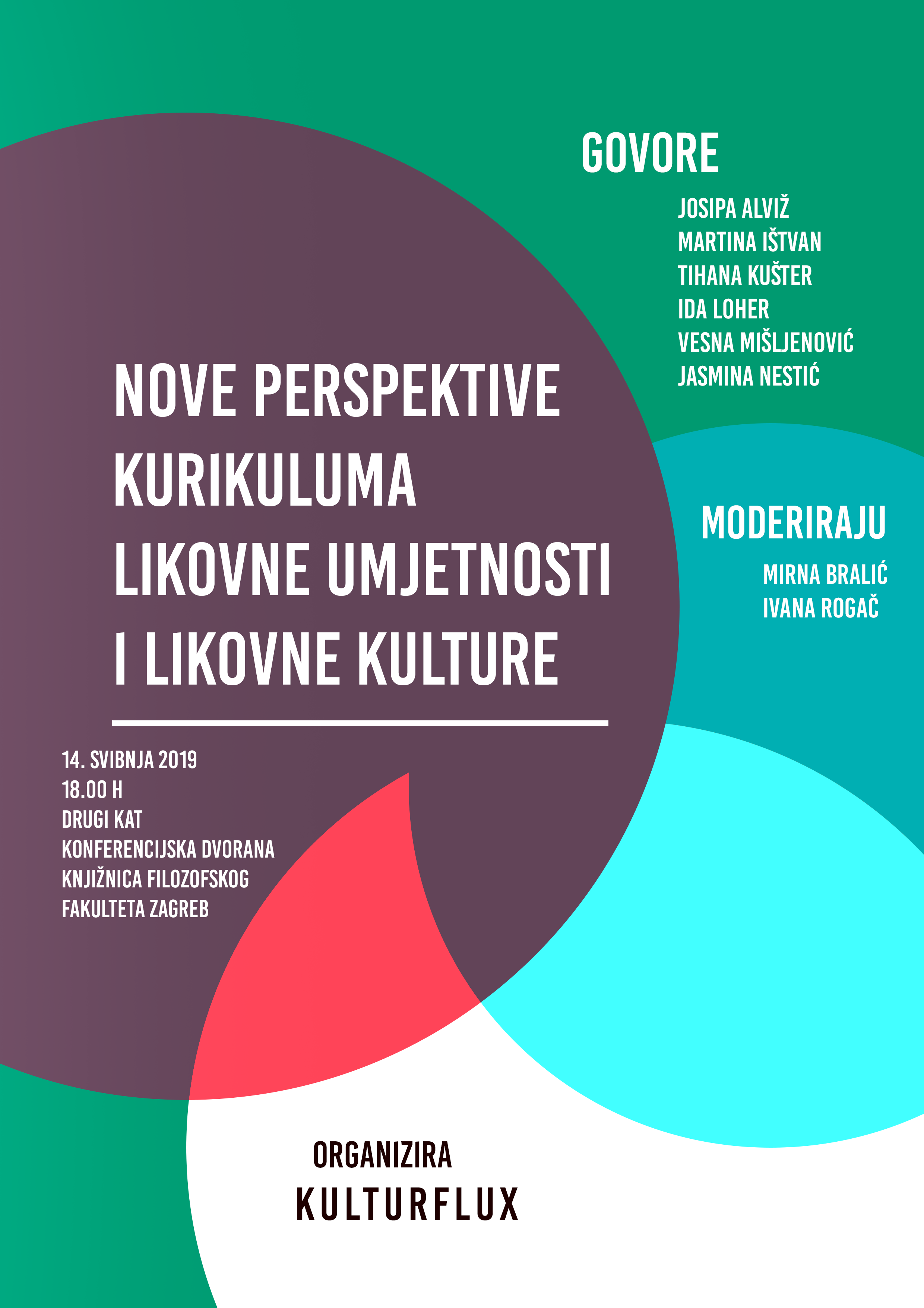 Portal Kulturflux pri Klubu studenata povijesti umjetnosti Filozofskog fakulteta u Zagrebu organizira 14. svibnja 2019. od 18.00 do 19.30 h u konferencijskoj dvorani na drugom katu knjižnice Filozofskog fakulteta u Zagrebu okrugli stol na kojem će stručnjaci iz područja metodike likovne umjetnosti i kulture i studenti nastavničkih smjerova diskutirati o potencijalima i perspektivama koji novi kurikulumi otvaraju nadolazećim generacijama učenika.